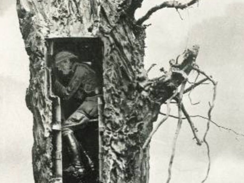 Nicola Felliers, avec la tenue adéquate, nous a raconté cette incroyable histoire de camouflage pendant la première guerre de 14/18 ; longtemps secret défense, les documents sont aujourd’hui consultables.